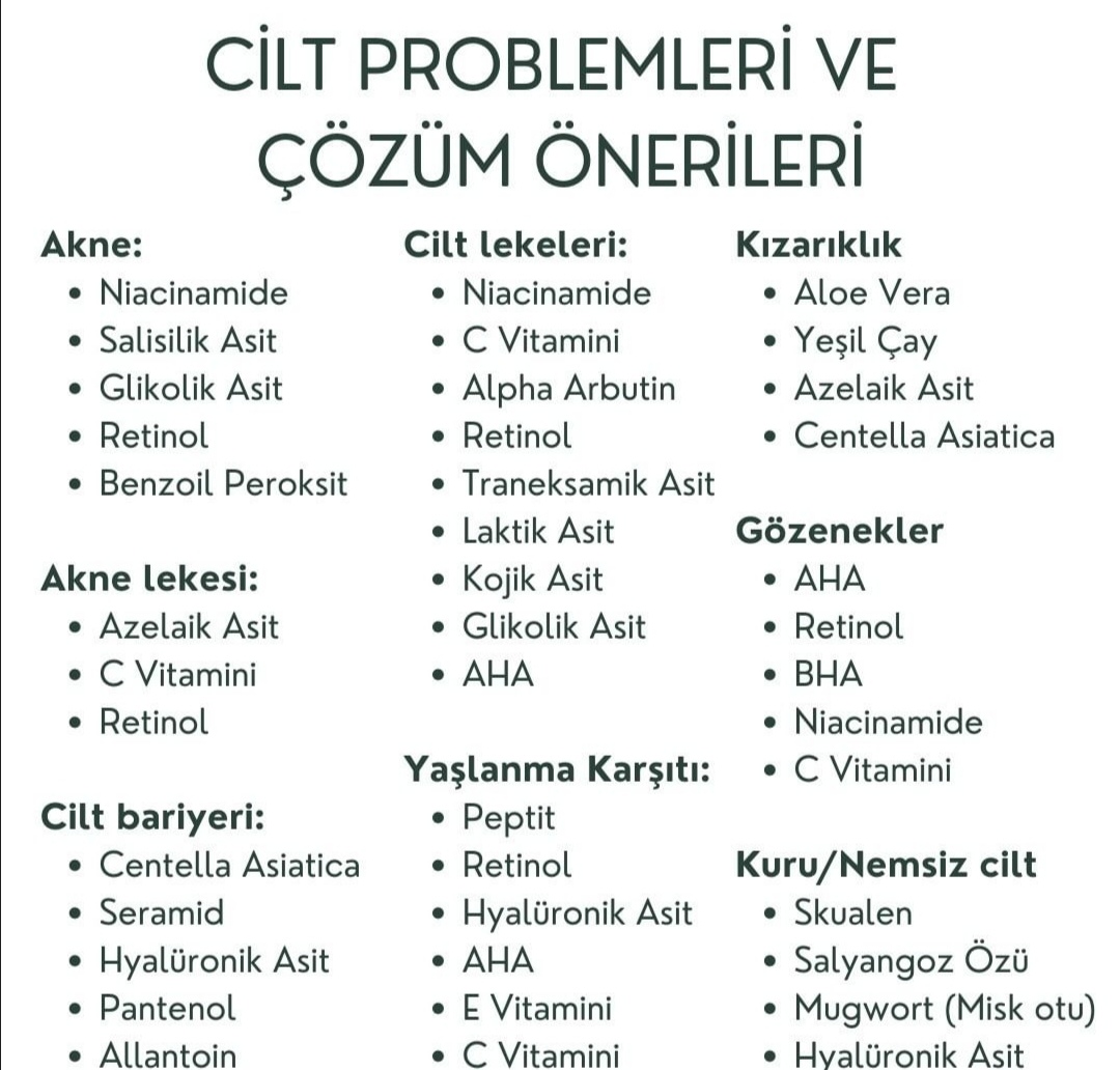 içerikler hakkında da bildiklerimi paylaşmak isterim. Ne ne işe yarar, neden kullanılmalı, etkili formülasyonlar nelerdir. Biraz bunlardan bahsedelim. Dermatolog değilim, kimyager değilim. Araştırmalarım ve merakım doğrultusunda bildiklerimi paylaşıyorum.