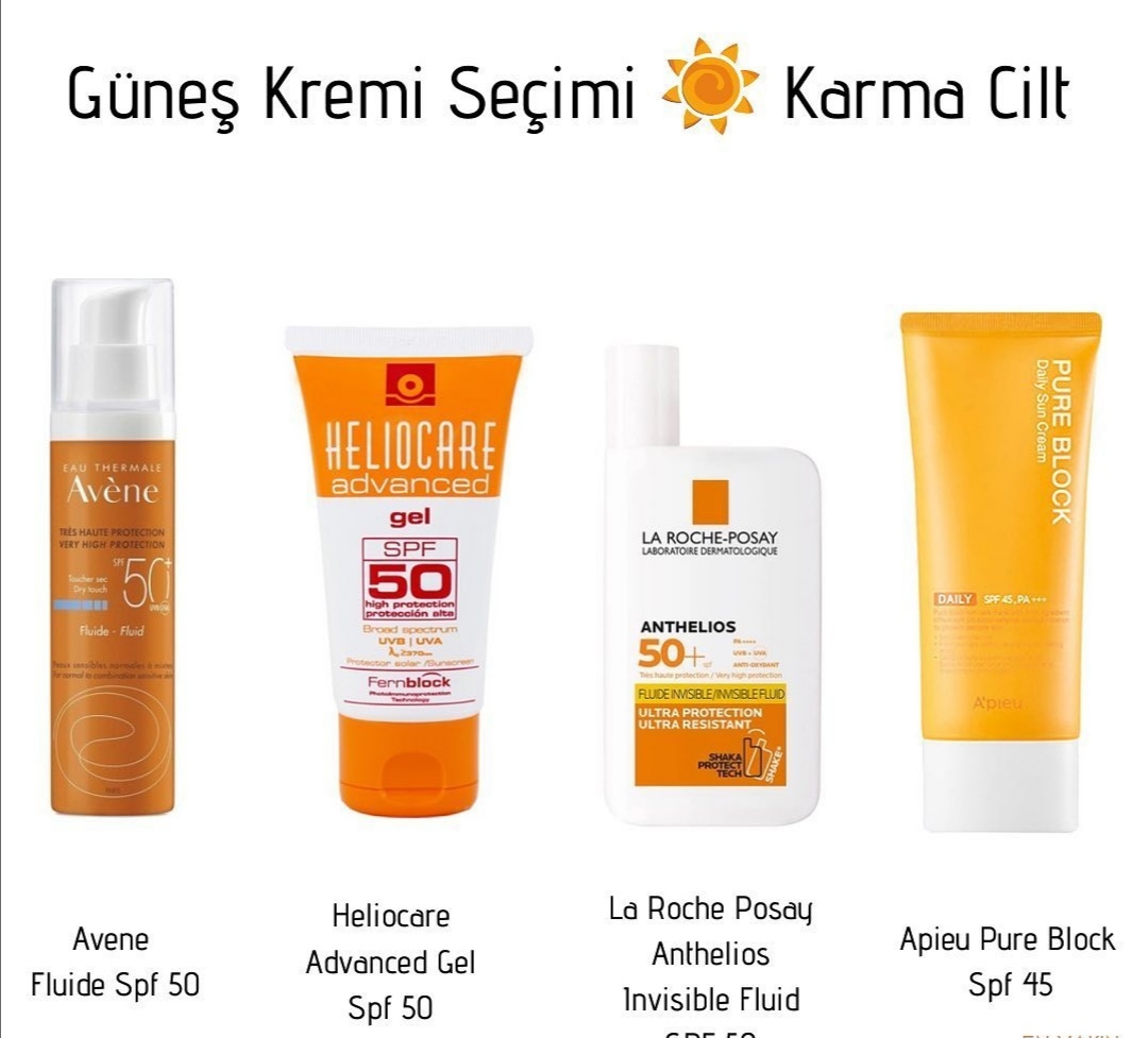 yazın kullandığım la roche posey yağlı ve hassas ciltler için olan güneş kremi ile kışın kullandığım heliocare jel güneş kremi zaten vazgeçilmezim , üretimi olduğu sürece ölene kadar onları kullanırım.