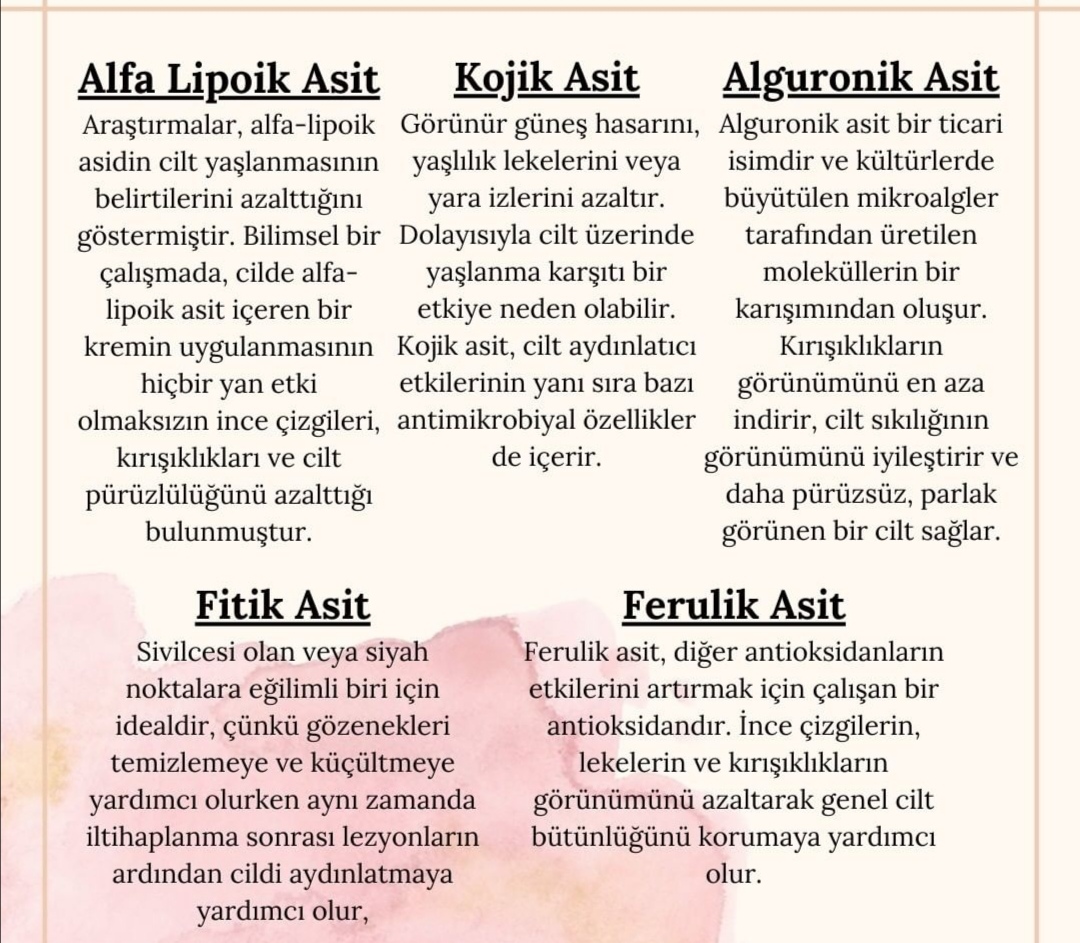 içerikler hakkında da bildiklerimi paylaşmak isterim. Ne ne işe yarar, neden kullanılmalı, etkili formülasyonlar nelerdir. Biraz bunlardan bahsedelim. Dermatolog değilim, kimyager değilim. Araştırmalarım ve merakım doğrultusunda bildiklerimi paylaşıyorum.